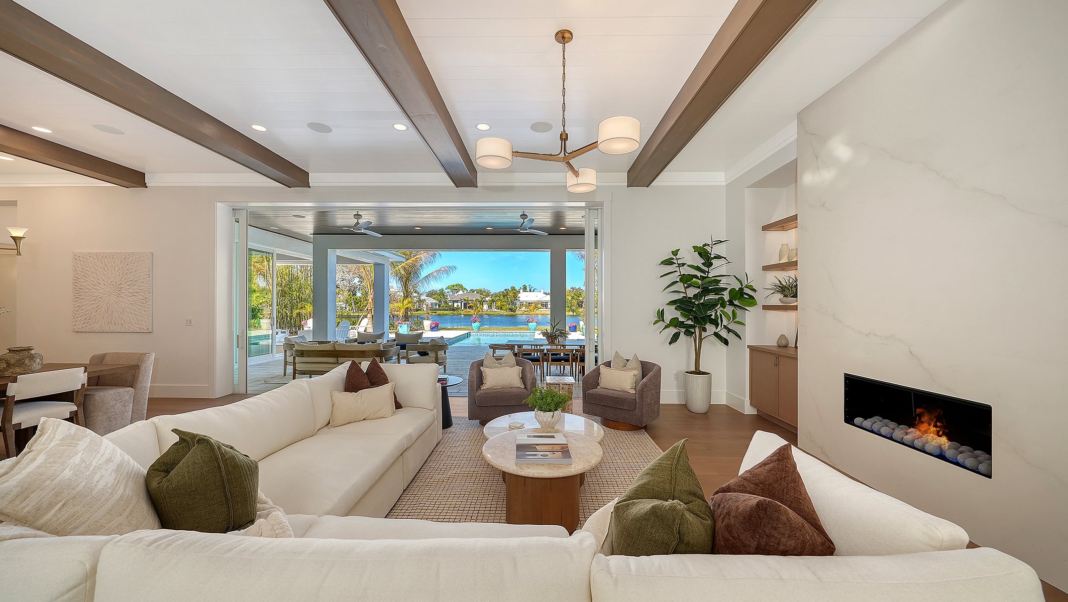 Enjoy leisurely moments on the balcony overlooking the serene lake. Step through the massive pocketing sliding glass doors to discover your personal lakefront oasis – a breathtaking outdoor living retreat with a custom pool and spa and a fully equipped outdoor kitchen. Gather around the fire pit, perfect for cozy evenings under the stars. The Windemere II is not just a custom residence; it is a lifestyle. Experience the epitome of high-end-living and schedule a tour today!