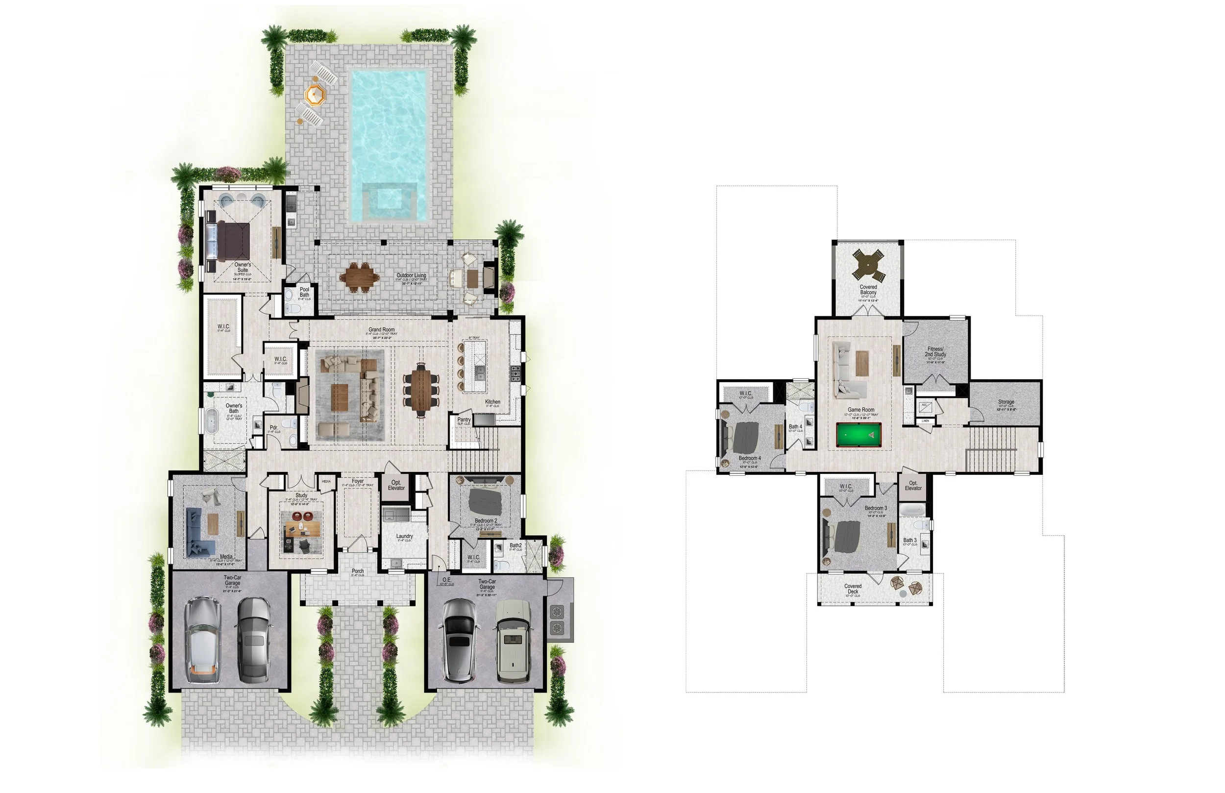 Lakefront living opportunities are rare in Sarasota’s West of Trail neighborhood! The Windley is ideally situated on a large, sparkling lake in the coveted Oyster Bay neighborhood with optimal southwestern home exposure. Lake vistas are at the forefront in this one-of-a-kind custom home design that features expansive sliding glass doors and expansive outdoor living area overlooking a beautiful pool and spa. The vast owners’ suite includes a bedroom with vaulted ceiling, large his and hers closets and luxurious master bathroom with a free standing tub. The second level is accessible by way of wood stairs and elevator. Two guests bedrooms and exercise room await on the second level with a vast Game Room area and wet bar, ideal for entertaining. Sunset lakefront cocktails can be taken in from the expansive second covered balcony. As with all Heritage Builders custom homes, The Windley delivers the finest appointments including sand finish stucco, custom wood entry door, heated pool/spa, hardwood flooring, quartz counter tops, custom cabinetry, Icynene insulation, luxury tile, impact windows/doors and more.
